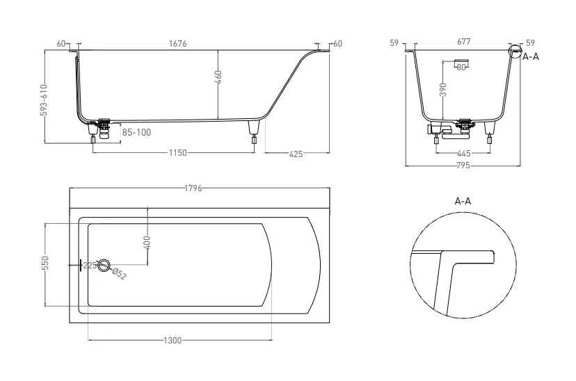 - Регулируемые ножки (ванна с экранами по высоте НЕ регулируется)