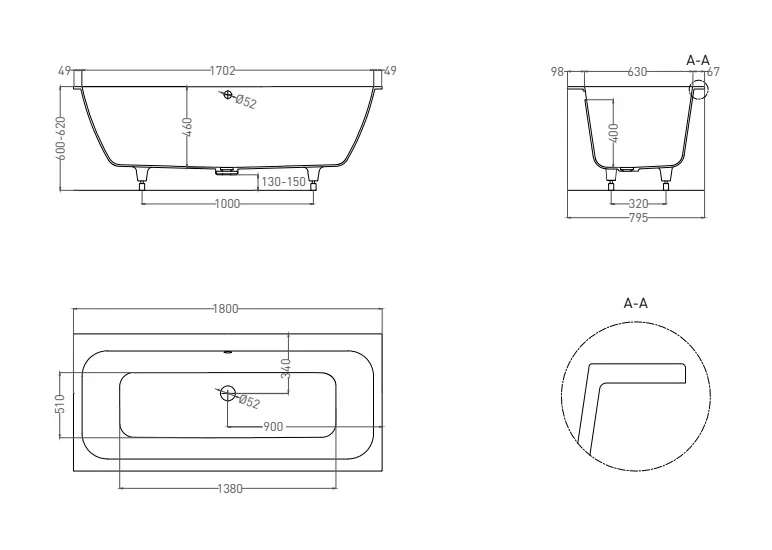 Она предназначена как для полного или частичного встраивания, так и для любой установки — пристенной, угловой или отдельно стоящей. Ванна характеризуется одинаковым уклоном бортов. Название модели Axis («Ось») отражает характерную симметрию ванны во фронтальной проекции.