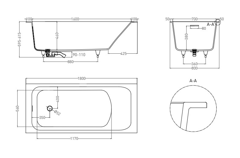 - Регулируемые ножки (ванна с экранами по высоте НЕ регулируется)