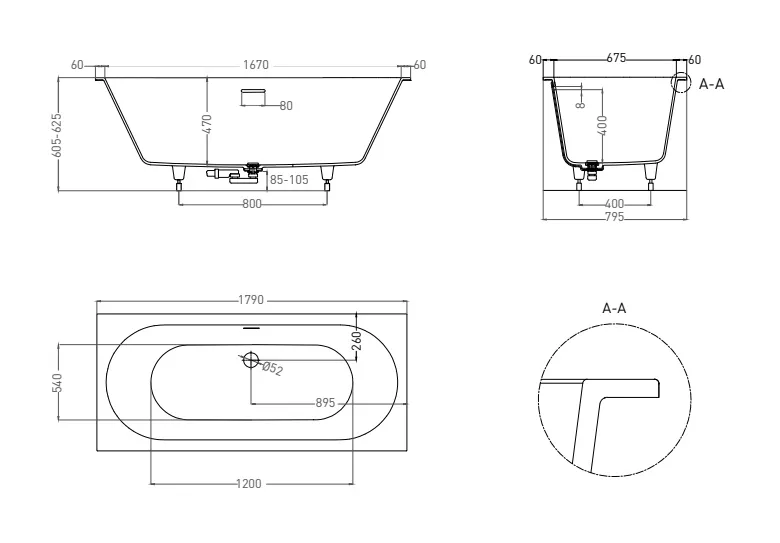 Вневременная эстетика и чистые линии корпуса ванны делают её уместной и желанной как в классическом, так и в современном интерьере. Ванна предназначена для полного или частичного встраивания, а также для любой установки — пристенной, угловой или отдельно стоящей. Модель отличают донный клапан и слив-перелив с центральным расположением.
