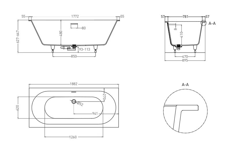 Вневременная эстетика и чистые линии корпуса ванны делают её уместной и желанной как в классическом, так и в современном интерьере. Ванна предназначена для полного или частичного встраивания, а также для любой установки — пристенной, угловой или отдельно стоящей. Модель отличают донный клапан и слив-перелив с центральным расположением.