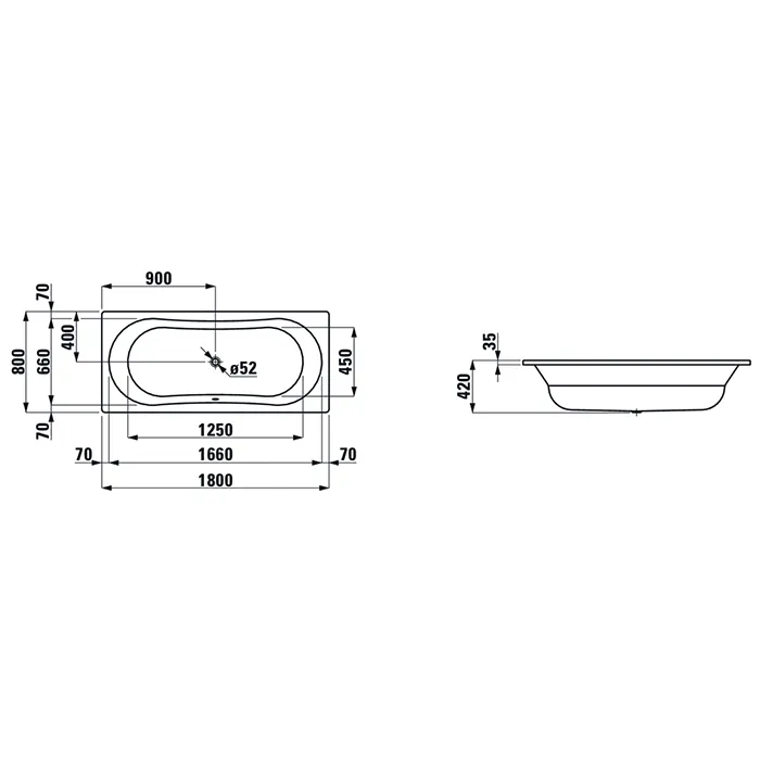 Стальная ванна Laufen Thallium 180x80 2.2509.3.600.040.1