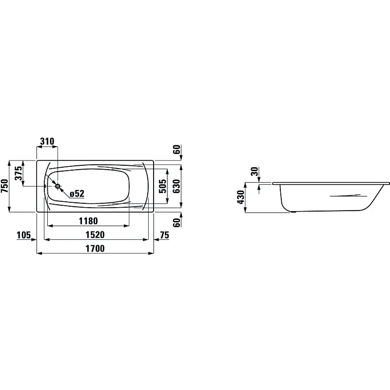 Стальная ванна Laufen Palladium 170x75 2.2511.0.600.040.1