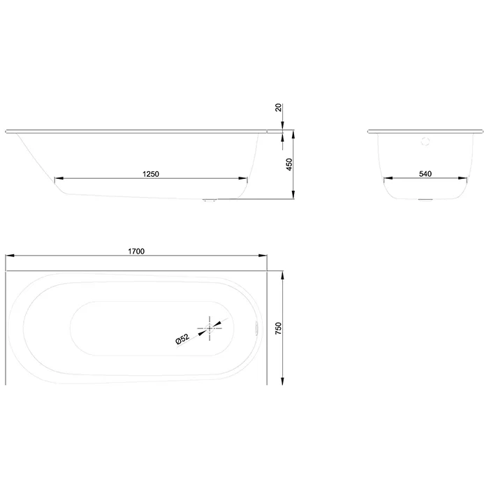 Стальная ванна Bette Comodo 170x75 1250-000 AS