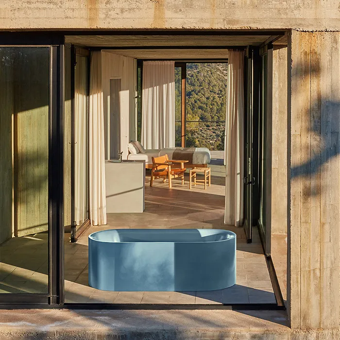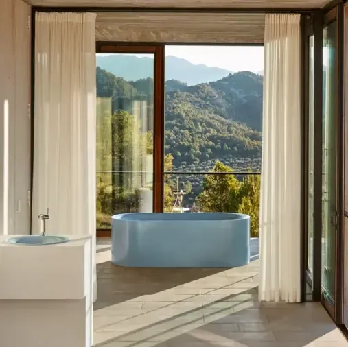 Изогнутая внешняя форма особенно хорошо подчеркивает мягкие, плавные контуры ванной.