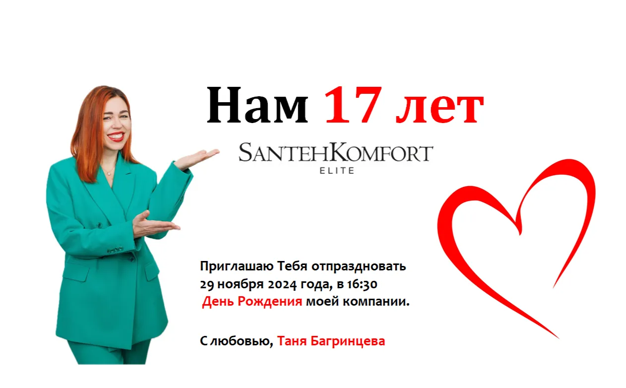 Тем более у нас двойной праздник, моему салону SANTEHKOMFORT ELITE 17 лет!!!!